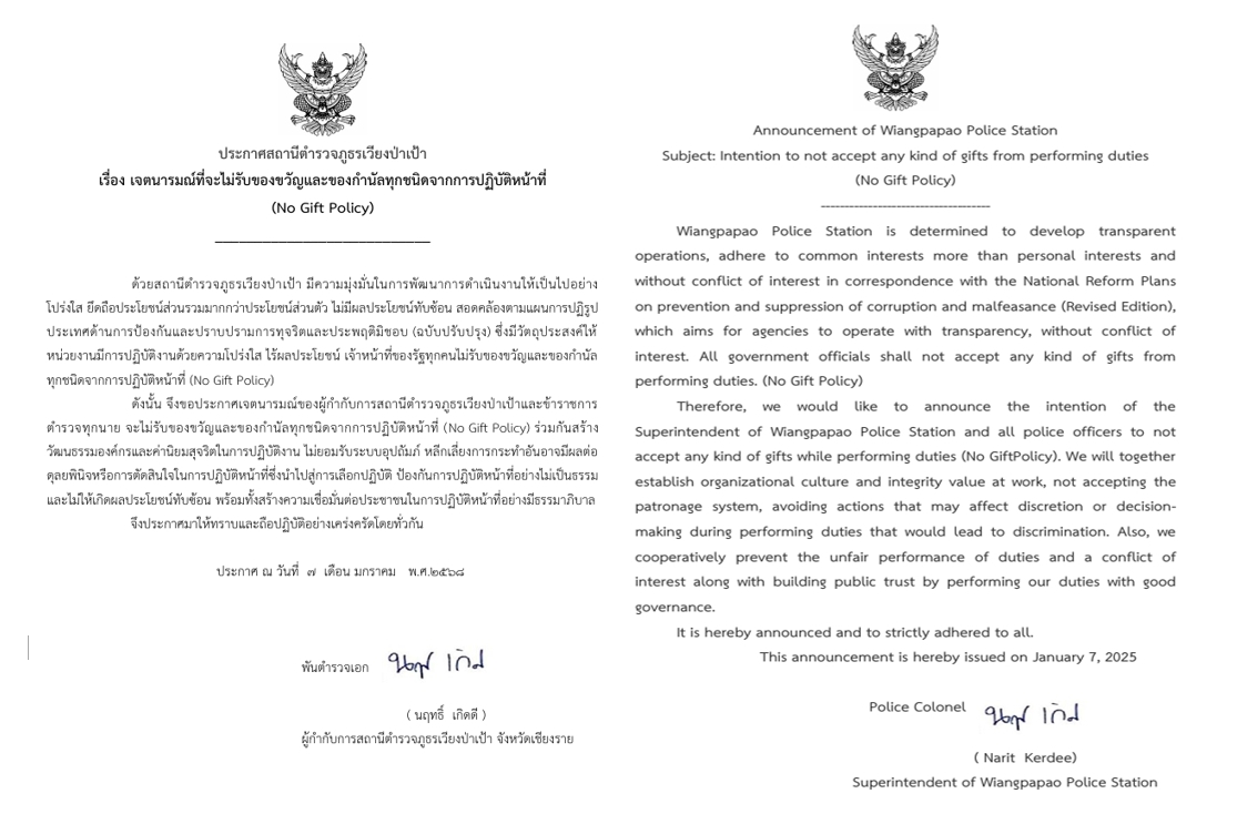 - การปฏิบัติหน้าที่ของเจ้าหน้าที่ตำรวจ สภ.เวียงป่าเป้า