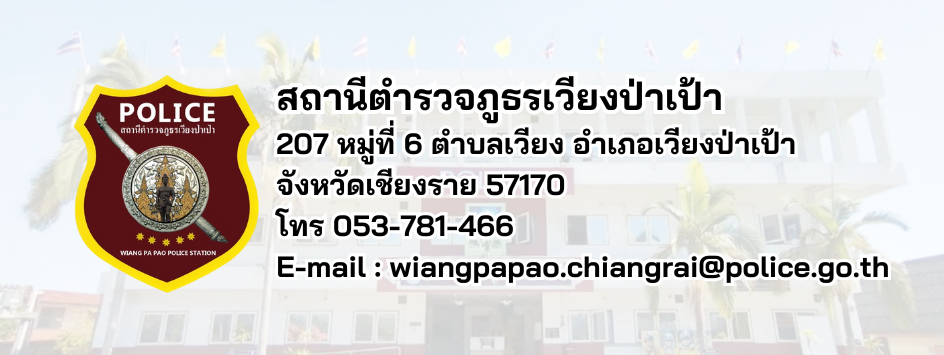 ข้อมูลการติดต่อ และช่องทางการรับฟังความเห็น ติดต่อทาง Facebook👈 แผนที่ตั้งสถานีตำรวจภูธรเวียงป่าเป้า ช่องทางการถาม - ตอบ/รับฟังความคิดเห็น Loading…