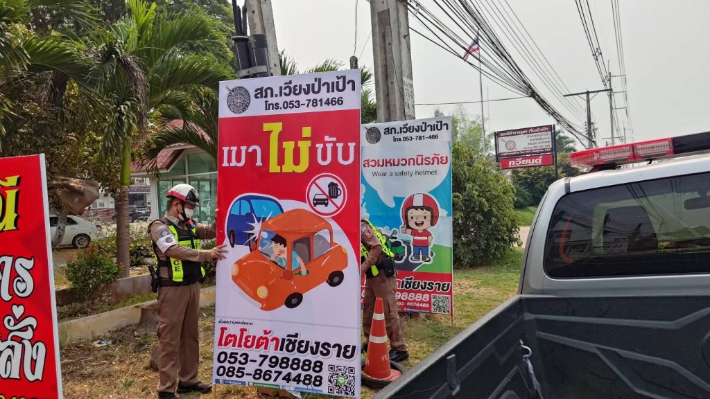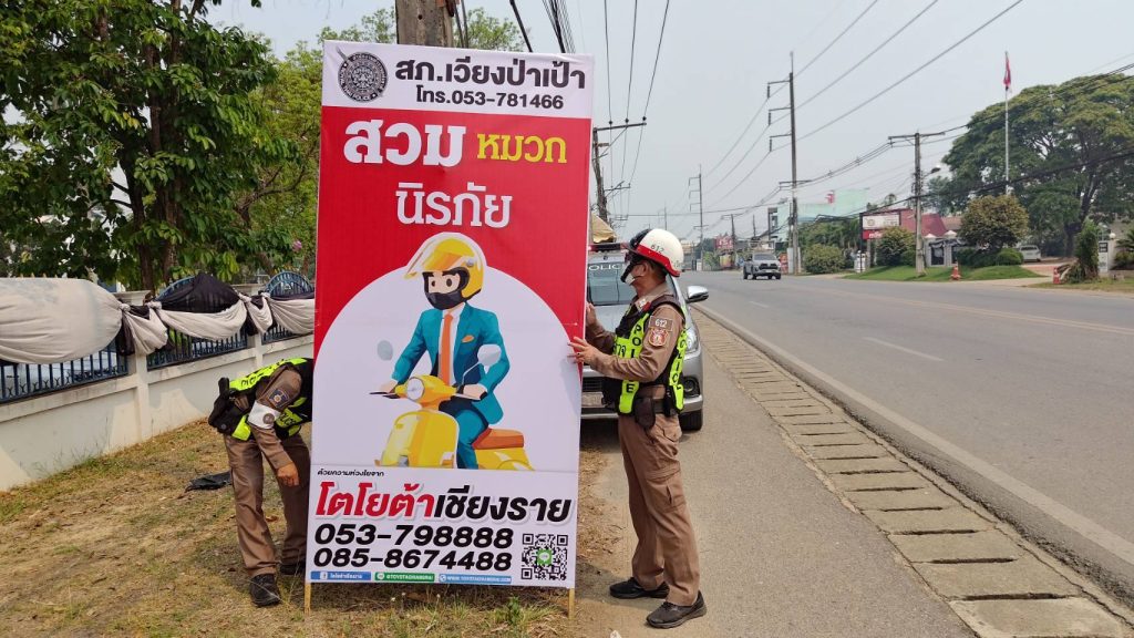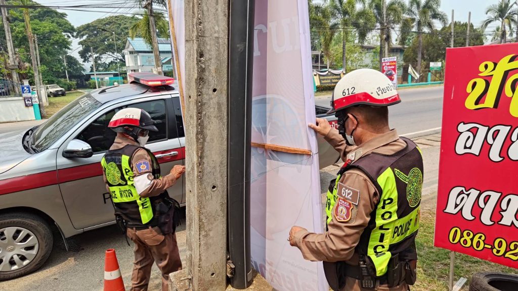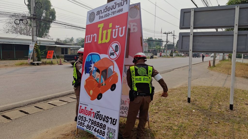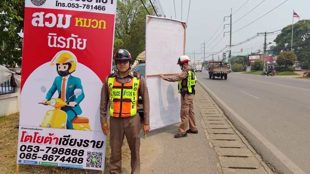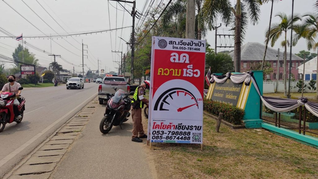 วันนี้ 7 เม.ย.2569 เวลา 11.00 น.โดยการอำนวยการของ พ.ต.อ.นฤทธิ์ เกิดดี ผกก.สภ.เวียงป่าเป้า พ.ต.ท.รัชพล สะสม รอง.ผกก.ป.สภ.เวียงชัย ปรท. รอง.ผกก.ป.สภ.เวียงป่าเป้า พ.ต.ต.วิทยา จันทร์ชัยศรี สวปฯได้มอบหมายให้งานจราจรบูรณาการร่วมฝ่าย อบตฯเทศบาลฯในพื้นที่ติดตั้งป้ายประชาสัมพันธ์ เตือนนักท่องเที่ยวและผู้ใช้รถใข้ถนน ช่วงเทศกาลสงกรานต์ 2569