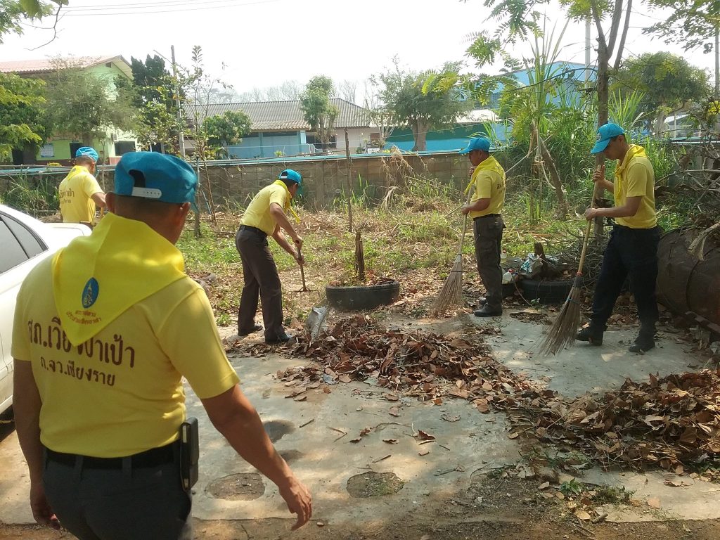 วันที่ 14 มี.ค.2567 เวลา 11.00-12.00 น.โดยการนำของ พ.ต.อ.นฤทธิ์ เกิดดี ผกก.สภ.เวียงป่าเป้า พ.ต.ท.พิชิตชัย พุทธวงศ์ รอง.ผกก.ปฯได้ร่วมกับข้าราชการตำรวจจิตอาสาพัฒนาโดยร่วมทำความสะอาดสถานที่ราชการ สภ.เวียงป่าเป้า/ลานจอดรถ/ที่พักประชาชนผู้มาติดต่อราชการและ สวนพืชผักตามโครงการบ้านนี้มีรัก ปลูกผักกินเอง หลังที่ทำการ สภ.เวียงป่าเป้า โดยได้เก็บเศษวัชพืช-ใบไม้แห้ง ได้ร่วมรดน้ำต้นไม้-ลานพื้นปูน เพื่อลดมลพิษและฝุ่นละออง PM.2.5 ตามนโยบายร่วมกัน ตลอดถึงเป็นการประชาสัมพันธ์แนวนโยบายป้องกันไฟป่าฝุ่นละอองแก่ข้าราชการตำรวจในสังกัดต่อไป