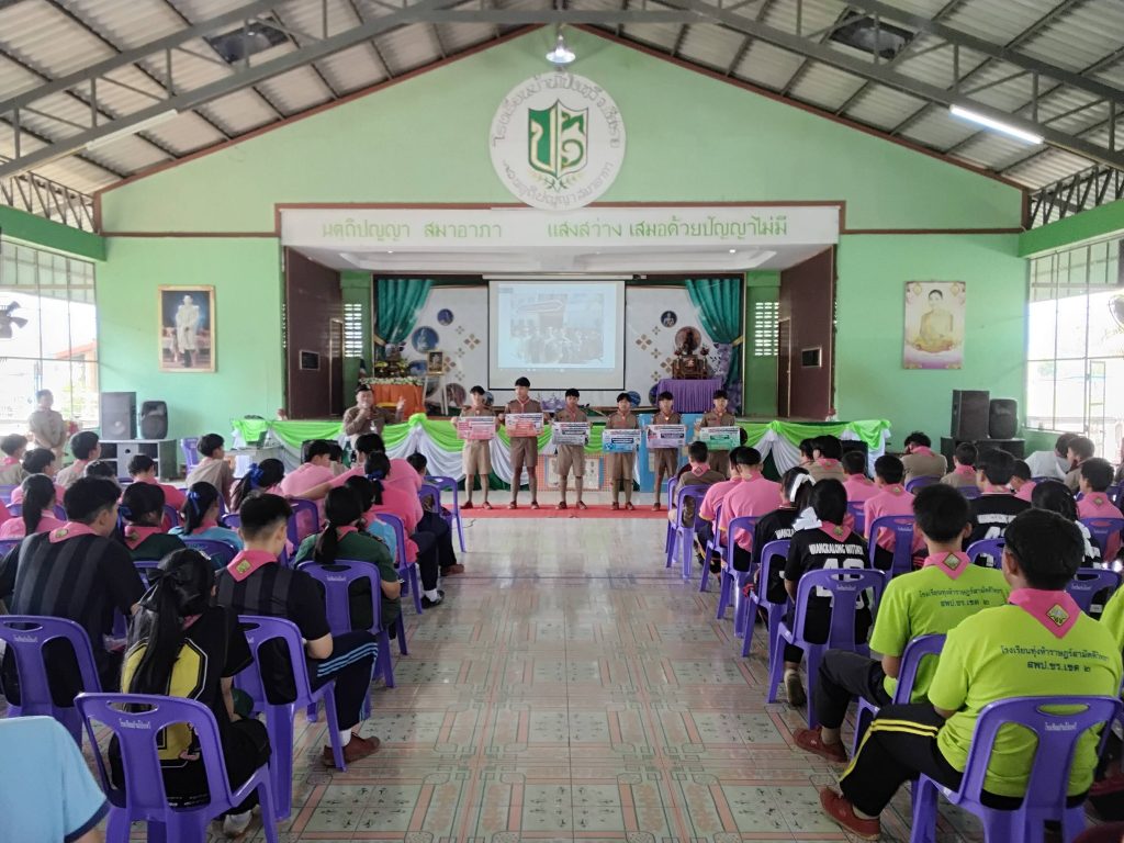 นที่ 17 มี.ค.2569 เวลา 10.00-12.00 น.โดยการอำนวยการของ พ.ต.อ.นฤทธิ์ เกิดดี ผกก.สภ.เวียงป่าเป้า พ.ต.ท.รัชพล สะสม รอง.ผกก.ป.เวียงชัย ปรท รอง.ผกก.ป.สภ.เวียงป่าเป้า พ.ต.ต.วิทยา จันทร์ชัยศรี สวปฯได้มอบหมายให้ ร.ต.อ.สมหมาย แก้วแปงจันทร์ รอง.สว.(ป)ฯและชุด ชมสฯและวิทยากรครูตำรวจแดร์ได้ออกแสวงหาความร่วมมือหน่วยจากองค์กร&หน่วยงานสถานศึกษาภาคีเครือข่ายประชาชนโดย ได้รับการประสานร่วมบรรยายให้ความรู้แก่ลูกเสือต้านภัยยาเสพติดในสถานศึกษา ของ ชมรมโรงเรียนขยายโอกาศทางการศึกษา * โครงการลูกเสือต้านภัยยาเสพติด ปี การศึกษา 2568 จำนวน 150 คน / มี 15 สถานศึกษา ณ โรงเรียนบ้านโป่งเทวี ต.บ้านโป่ง อ.เวียงป่าเป้า จ.เชียงราย