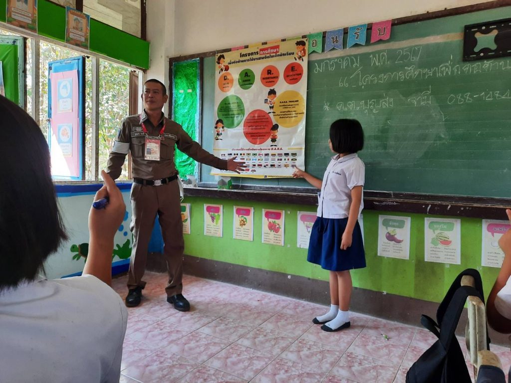 ด.ต.บุญส่ง จามี ผบ.หมู่.จราจร สภ.เวียงป่าเป้า ได้เข้าทำการสอนเด็กนักเรียนตามโครงการการศึกษาเพื่อต่อต้านการใช้ยาเสพติดในเด็กนักเรียน (D.A.R.E.) ประเทศไทย และแดร์ทูแคร์ ณ โรงเรียนบ้านโป่งนกBy admin / 5 กุมภาพันธ์ 2024 วันที่ 5 กุมภาพันธ์ 2567 เวลา 13.00 -15.00 น.โดยการอำนวยการของ พ.ต.อ.นฤทธิ์ เกิดดี ผกก.สภ.เวียงป่าเป้า พ.ต.ท.พิชิตชัย พุทธวงศ์ รอง.ผกก.ปฯพ.ต.ท.อรรถพร บุรีคำ สวปฯได้มอบหมายให้ ด.ต.บุญส่ง จามี ผบ.หมู่.จราจร สภ.เวียงป่าเป้า วิทยากรครูตำรวจแดร์รหัส 18634 ได้เข้าทำการสอนเด็กนักเรียนตามโครงการการศึกษาเพื่อต่อต้านการใช้ยาเสพติดในเด็กนักเรียน (D.A.R.E.) ประเทศไทย และแดร์ทูแคร์ ณ โรงเรียนบ้านโป่งนก ต.สันสลี อ.เวียงป่าเป้า จว.เชียงราย นักเรียนชั้น ป.5 ซึ่งได้รับความร่วมมือจาก ผอ.สถานศึกษาฯและคณะครูประจำชั้นตลอดถึงเด็กนักเรียนเป็นอย่างดี