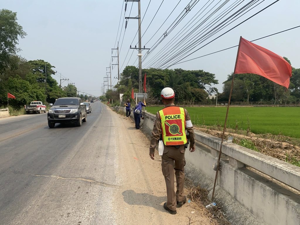 ติดตั้งป้ายเตือนนักท่องเที่ยวในช่วงเทศกาลสงกรานต์และผู้สัญจรไป-มาในเส้นทางหลวงสาย 118By admin / 4 เมษายน 2025 สภ.เวียงป่าเป้า ชร.ในวันนี้ 4 เม.ย.68 เวลา 10.30 น. ชุดสายตรวจงานจราจร สภ.เวียงป่าเป้า ร่วมกับ เจ้าหน้าที่ ทาง อบต.เวียง ทำการออกติดตั้งป้ายเตือนนักท่องเที่ยวในช่วงเทศกาลสงกรานต์และผู้สัญจรไป-มาในเส้นทางหลวงสาย 118 ณ. จุดทางร่วมทางแยกและป้ายผ้าธงสัญลักษณ์สีแดง เพื่อป้องกันอุบัติเหตุในช่วงเทศกาลสงกรานต์ 2568