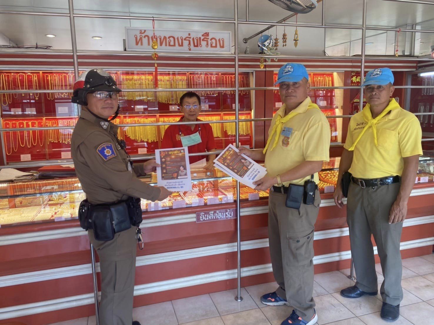 วันที่ 9 กุมภาพันธ์ 2567 เวลา 13.00-14.00 น.โดยการอำนวยการของ พ.ต.อ.นฤทธิ์ เกิดดี ผกก.สภ.เวียงป่าเป้า พ.ต.ท.พิชิตชัย พุทธวงศ์ รอง.ผกก.ปฯพ.ต.ท.อรรถพร บุรีคำ สวปฯ มอบหมายให้ ร.ต.อ.นรภัทร ทองดี รอง.สว.สอบสวน.หน.งานคดีฯ ร.ต.ท.ถนอม อุ่นเรือน รอง.สว.(ป)ฯสายตรวจจราจร ตัวแทนข้าราชการตำรวจชุดจิตอาสา/ร่วมกับสายตรวจป้องกันปราบปรามได้ร่วมออกแสวงหาความร่วมมือ/ทำกิจกรรมจิตอาสาภัยพิบัติฯโดยร่วมกันและรณรงค์ประชาสัมพันธ์การป้องกันอัคคีภัย จากการจุดธูป,จุดเทียน,เผากระดาษในพิธีไหว้ต่างๆ ในพื้นที่เสี่ยง ในช่วงเทศกาลตรุษจีน ตามข้อสั่งการ จอส.ตร. ครั้งที่ 1/2566 วันที่ 4 ม.ค.66 ข้อ 5 ณ บริเวณตลาด -กาดสดบ้านหัวเวียง-แหล่งชุมชน / ร้านทอง เขตพื้นที่ หมู่ที่ 1 ต.เวียง อ.เวียงป่าเป้า จ.เชียงราย และหมายเลขโทรศัพท์ แจ้งเหตุด่วน-เหตุร้ายต่อไป