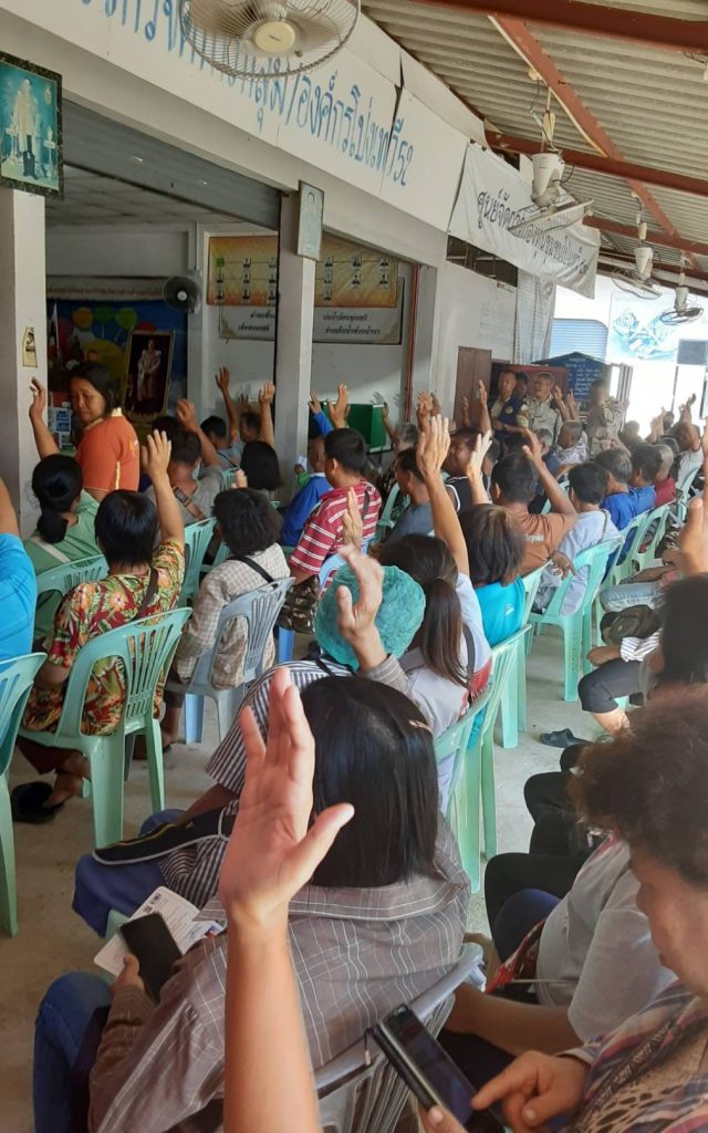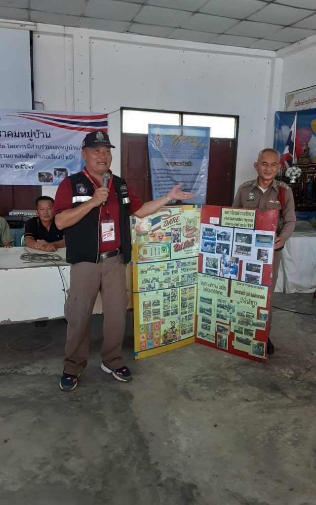 วันที่ 6 ตุลาคม 2566 เวลา 09.00 น. ภายใต้การอำนวยการของ พ.ต.อ.นฤทธิ์ เกิดดี ผกก.สภ.เวียงป่าเป้า , พ.ต.ท.สมชาย เด่นตี รอง.ผกก.ปฯ , พ.ต.ท.อรรถพร บุรีคำ สวปฯ ได้มอบหมายให้ ร.ต.อ.สุเวช เฉียบแหลม , ด.ต.ศธาวุธ เมฆิน ชมสฯ – วิทยากรครูตำรวจแดร์ สภ.เวียงป่าเป้า ได้รับการประสานจากฝ่ายปกครองอำเภอนายบัณฑิต ขันพล ปลัดฝ่ายความมั่นคงในการบูรณาการ แสวงหาความร่วมมือประชาคมหมู่บ้าน&ชุมชน ได้ร่วมบรรยายพิเศษตลอดถึงการออกพบปะเยี่ยมเยียนจากหน่วยงาน-ภาคประชาชน/ฝ่ายปกครอง ท้องถิ่น กรรมการหมู่บ้าน-แกนนำชุมชน ชรบ-สตบ-อสมฯ บ้านโป่งเทวี-บ้านโป่ง หมู่ที่ 2 และหมู่ที่ 5 ต.บ้านโป่ง โดยมีนายวิศิษฎ์ กันทะวงค์ กำนันตำบลบ้านโป่งและฝ่ายปกครองอำเภอเวียงป่าเป้าได้สอดแทรกสาระแกนนำชุมชน-กรรมการหมู่บ้านและ เรื่องต่อต้านยาเสพติด-มิจฉาชีพยุคไอที รู้เท่าทันภัยในยุคออนไลน์และการดูแลบุตรหลายเรื่องรถดัดแปรง-แต่งซิ่งในหมู่บ้าน-ชุมชนเป้าหมายแนวทางในการแจ้งเบาะแสแก่ทางราชการฯและแนวทางการปฏิบัติงาน ชมสฯ ปี 2567 ณ ศาลาเอนกประสงค์บ้านโป่งเทวี หมู่ที่ 5 ต.บ้านโป่ง อ.เวียงป่าเป้า ชร.และได้จัดเก็บข้อมูลประชาคมหมู่บ้านเพื่อ ร่วมกันต่อต้านภัยยาเสพติด ตลอดถึงรับฟังข้อเสนอแนะระดมสมองของแกนนำชุมชน ตามโครงการร่วมกันตลอดถึงแนวทางการปฏิบัติงานตามโครงการหน่วยเหนือต่อไปยังแกนนำ-กรรมการหมู่บ้านเป้าหมายตามนโยบายต่อไป