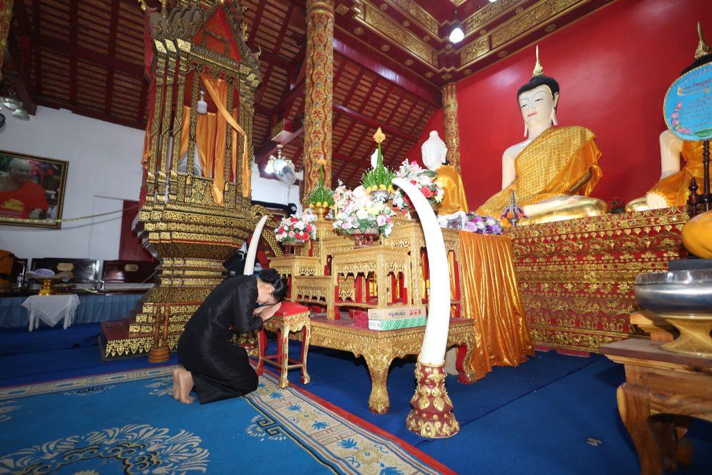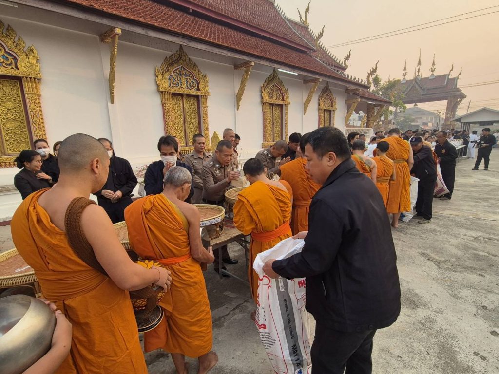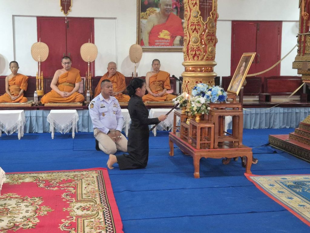 พ.ต.อ.นฤทธิ์ เกิดดี ผกก.สภ.เวียงป่าเป้า ได้มอบหมายให้ พ.ต.ท.ธฤษณุ ทาฤทธิ์ สว.อก.สภ.เวียงป่าเป้าฯ พร้อมข้าราชการตำรวจ ให้เข้าร่วมพิธีสวดพระพุทธมนต์และเจริญจิตภาวนา อุทิศถวายเป็นพระราชกุศลแด่สมเด็จพระนางเจ้าสิริกิติ์ พระบรมราชินีนาถ พระบรมราชชนนีพันปีหลวง ตามมติมหาเถรสมาคม ครั้งที่ 27/2568 ณ วัดสันมะเค็ด ต.เวียงกาหลง อ.วเวียงป่าเป้า จ.เชียงราย