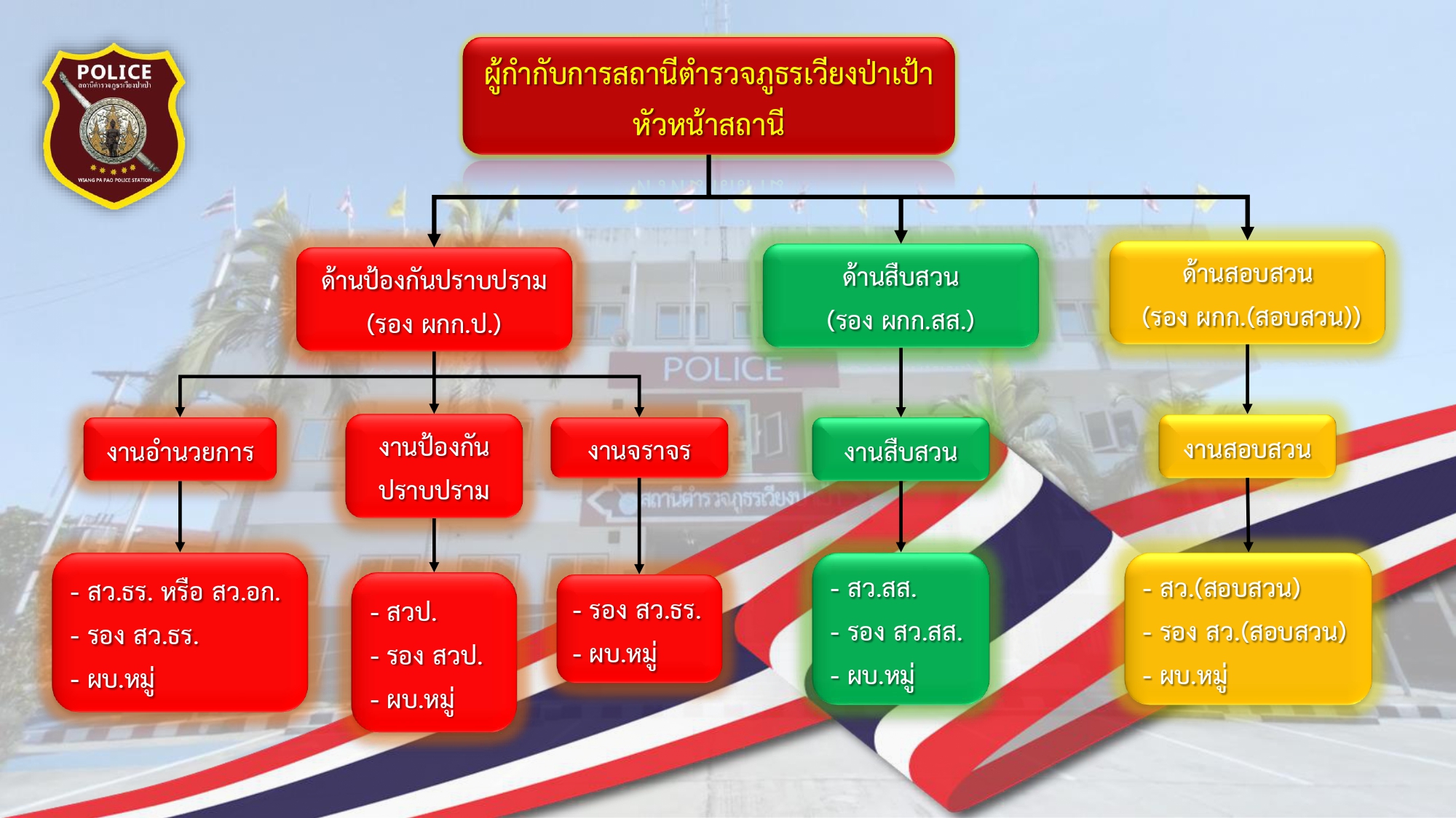 1.รองผู้กำกับการป้องกันปราบปรามเป็นหัวหน้างานอำนวยการ