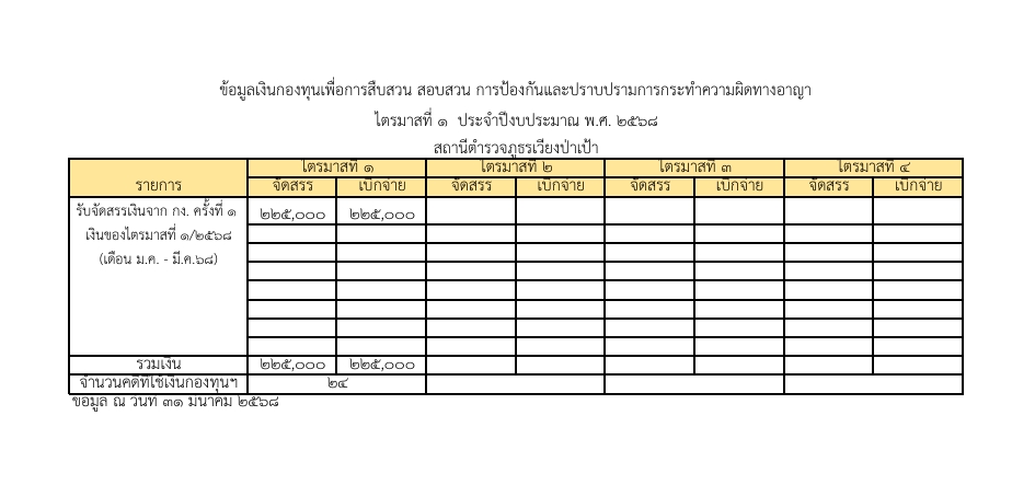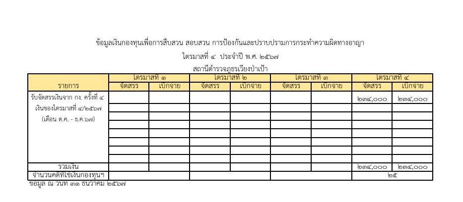 ข้อมูลเงินกองทุนสืบสวนสอบสวนฯ ไตรมาสที่ 1 พ.ศ.2568 Download เอกสาร ข้อมูลเงินกองทุนเพื่อการสืบสวนและสอบสวนคดีอาญา ข้อมูลเงินกองทุนสืบสวนสอบสวนฯ ไตรมาสที่ 4 พ.ศ.2567 Download เอกสาร ข้อมูลเงินกองทุนเพื่อการสืบสวนและสอบสวนคดีอาญา ระเบียบคณะกรรมการบริหารกองทุนเพื่อการสืบสวน ฯ Powered By EmbedPress แนวทางปฏิบัติในการเบิกจ่ายเงินกองทุนเพื่อการสืบสวนฯ ว-1044-แนวทางปฏิบัติในการเบิกจ่ายเงินกองทุนฯ ระเบียบเงินกองทุนเพื่อการสืบสวนฯ 431_ระเบียบคกก.หลักเกณฑ์การจ่ายฯ